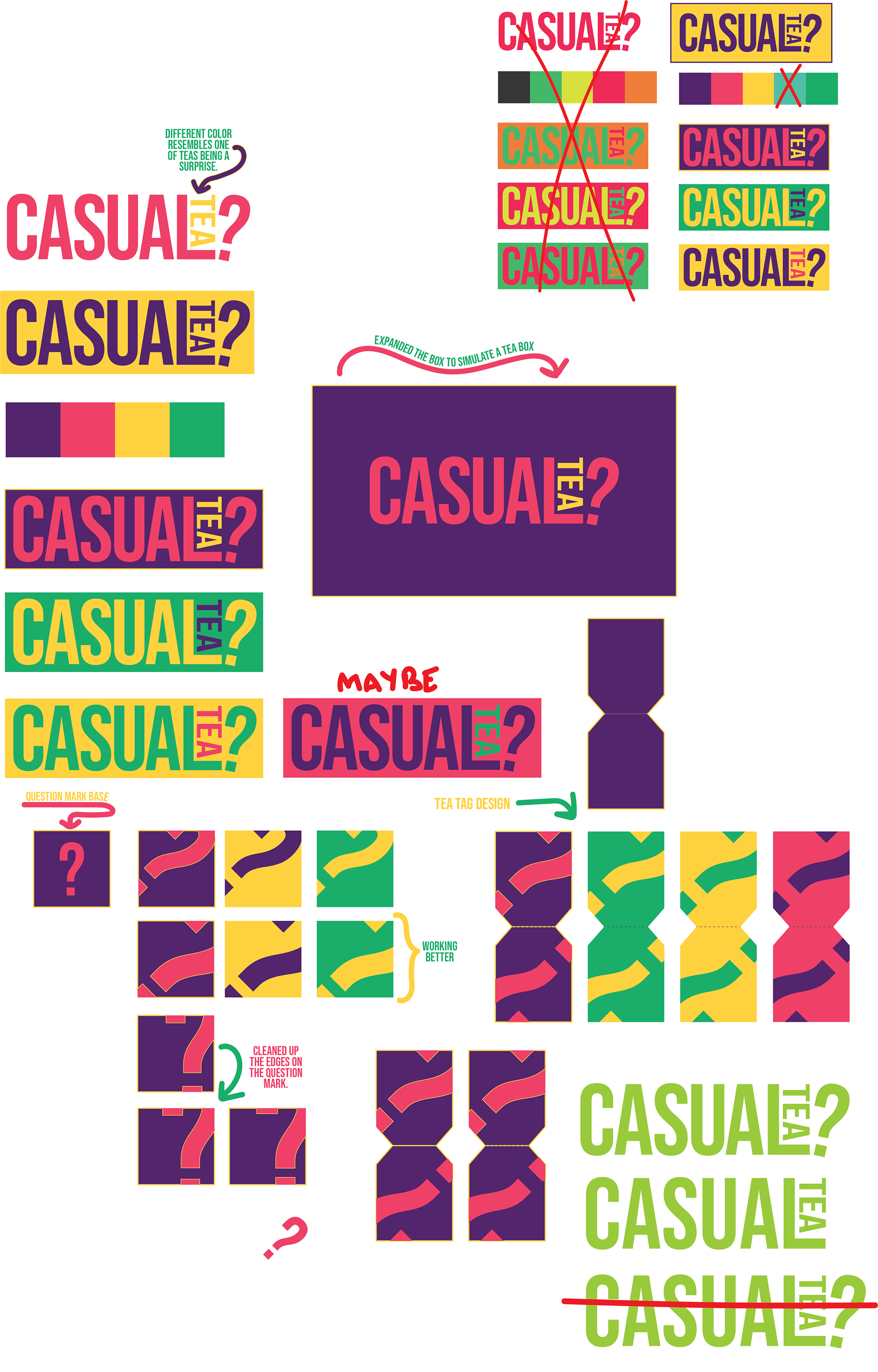 As this tea is unlike most others, it deserved a nicer box. I am a fan of designing box templates, so I went and created a sliding box design from scratch, testing it out many times to make sure that It operated smoothly. Using the edges of the box to my advantage, I added the signature question mark and stretched it to cover most of the surface, creating negative space that looks visually interesting but still resembles what it is supposed to.